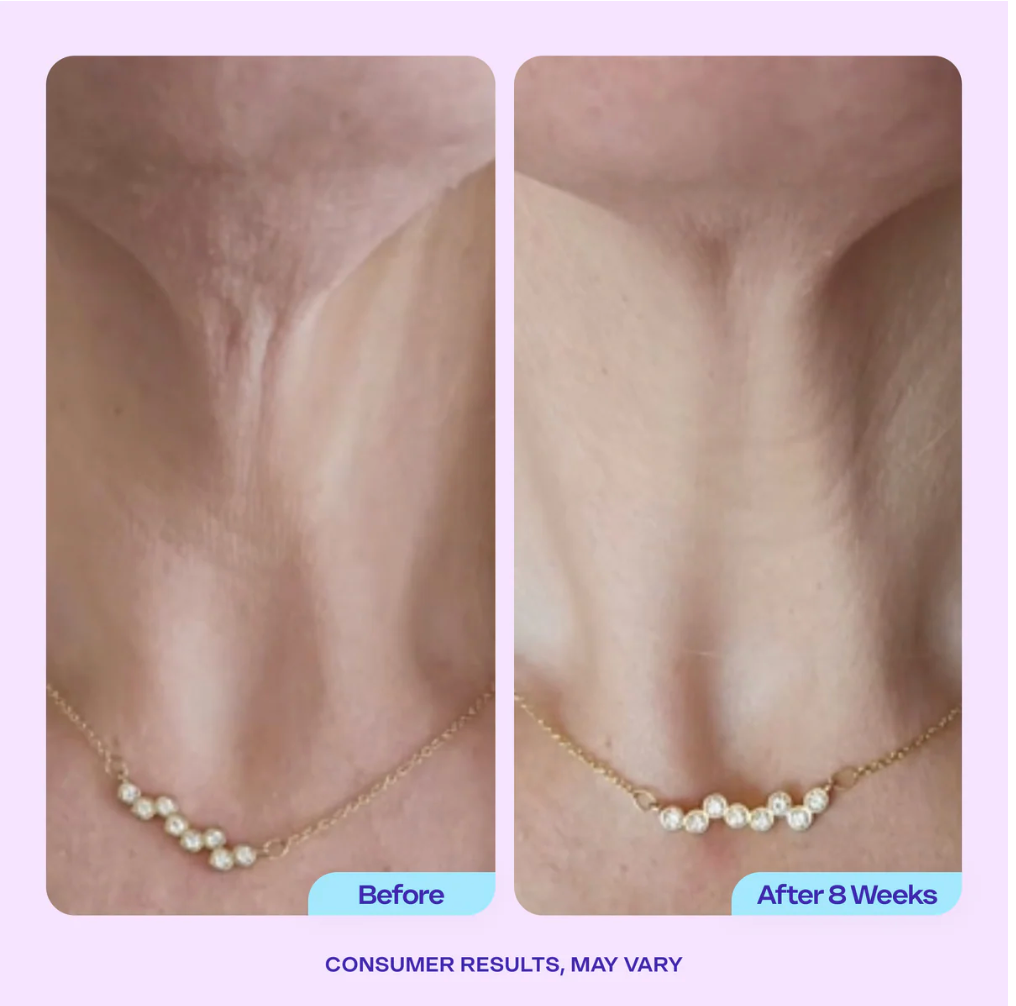 Bij consistent gebruik zal de formule het uiterlijk van verslapte huid, fijne lijntjes en rimpels op de hals verminderen.