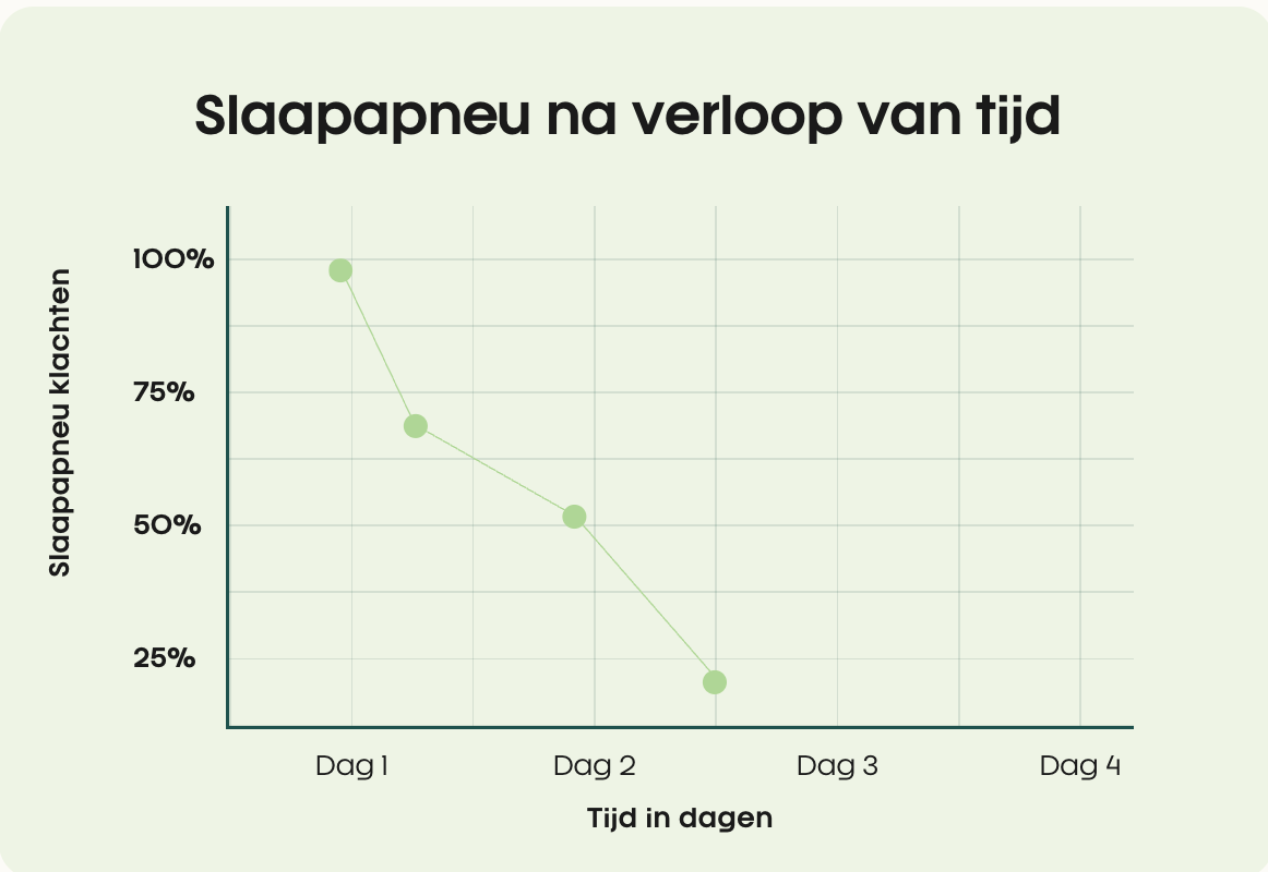 92% van de deelnemers merkte na 2 nachten een afname van hun slaapapneu
