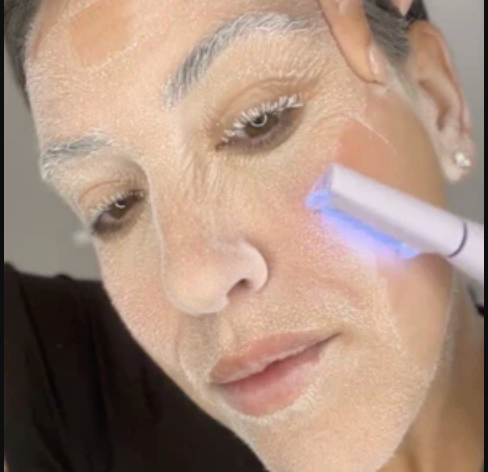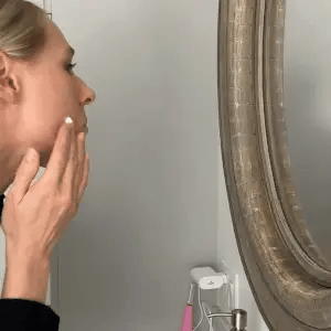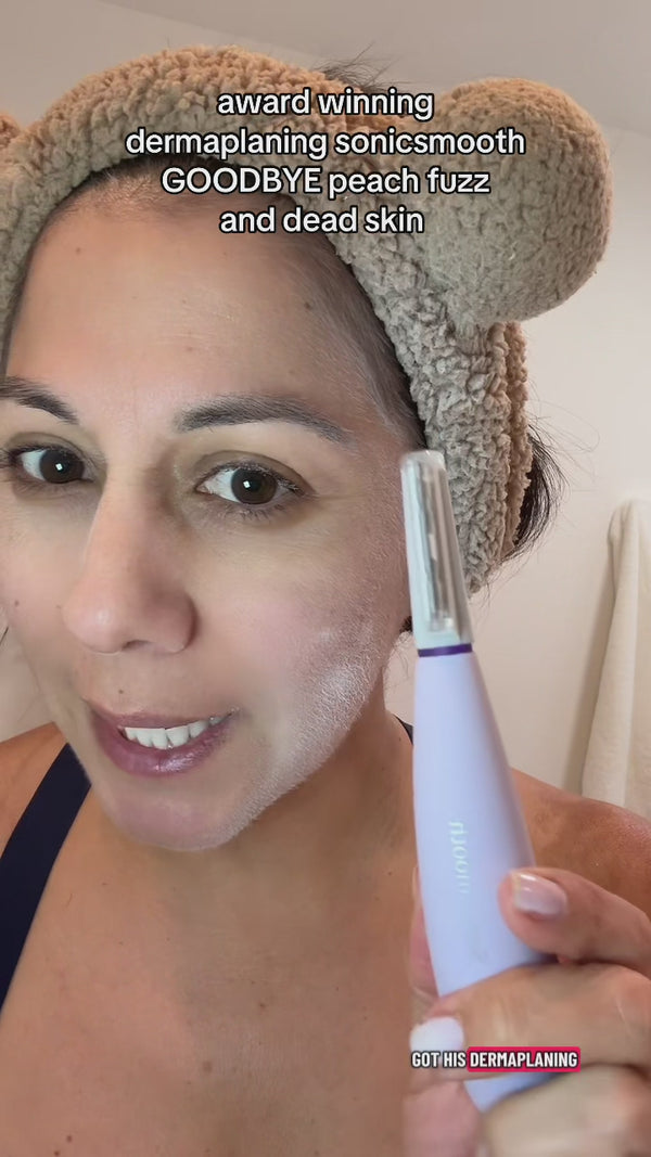 Attach a safety tip & choose speed. Glide the Sonicsmooth across your face while holding skin taut.