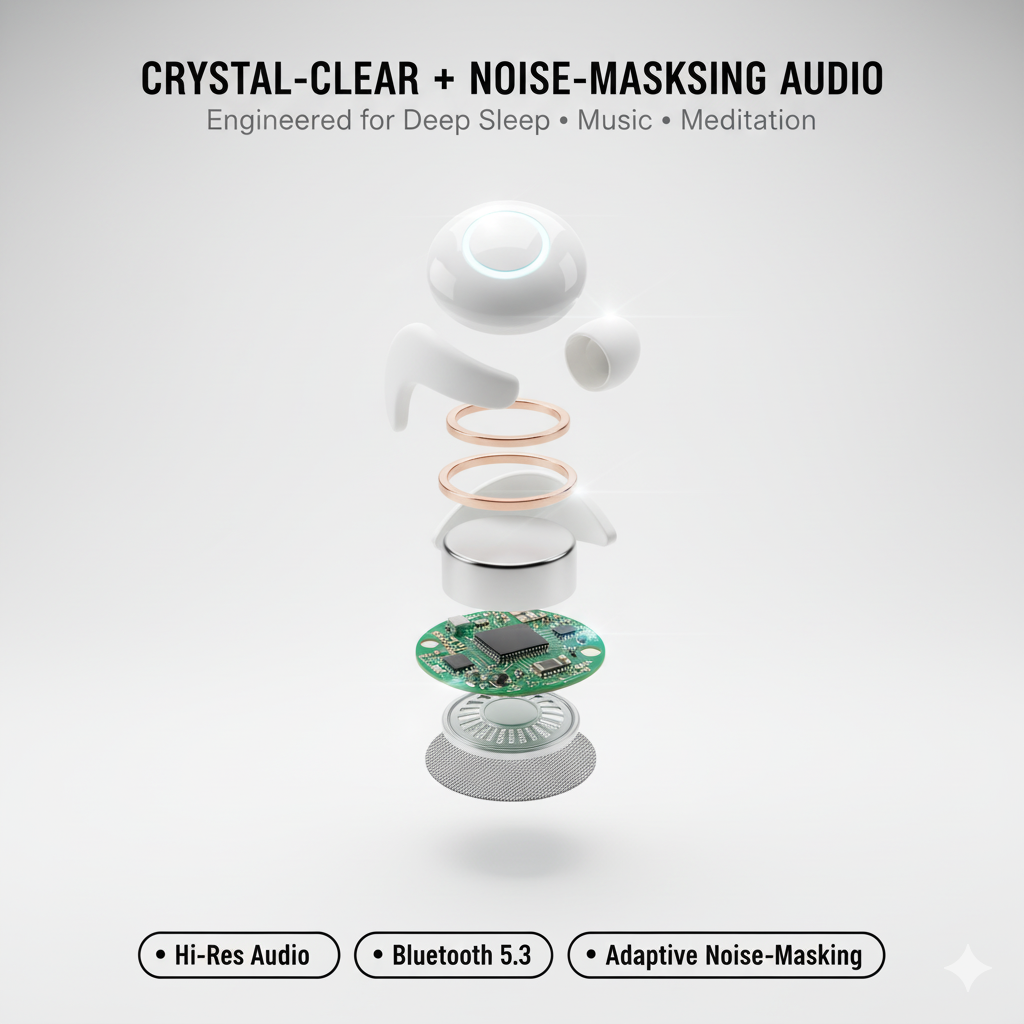 Our SleepShield Buds fit softly, block distractions, and help your mind unwind —