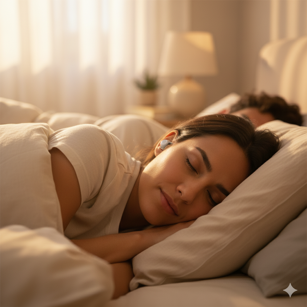 SleepShield™ uses advanced noise-masking technology that blocks disruptive sounds like snoring, traffic, or city noise. Combined with soft-fit silicone and soothing sound options, they help your brain relax and stay in deep sleep longer.