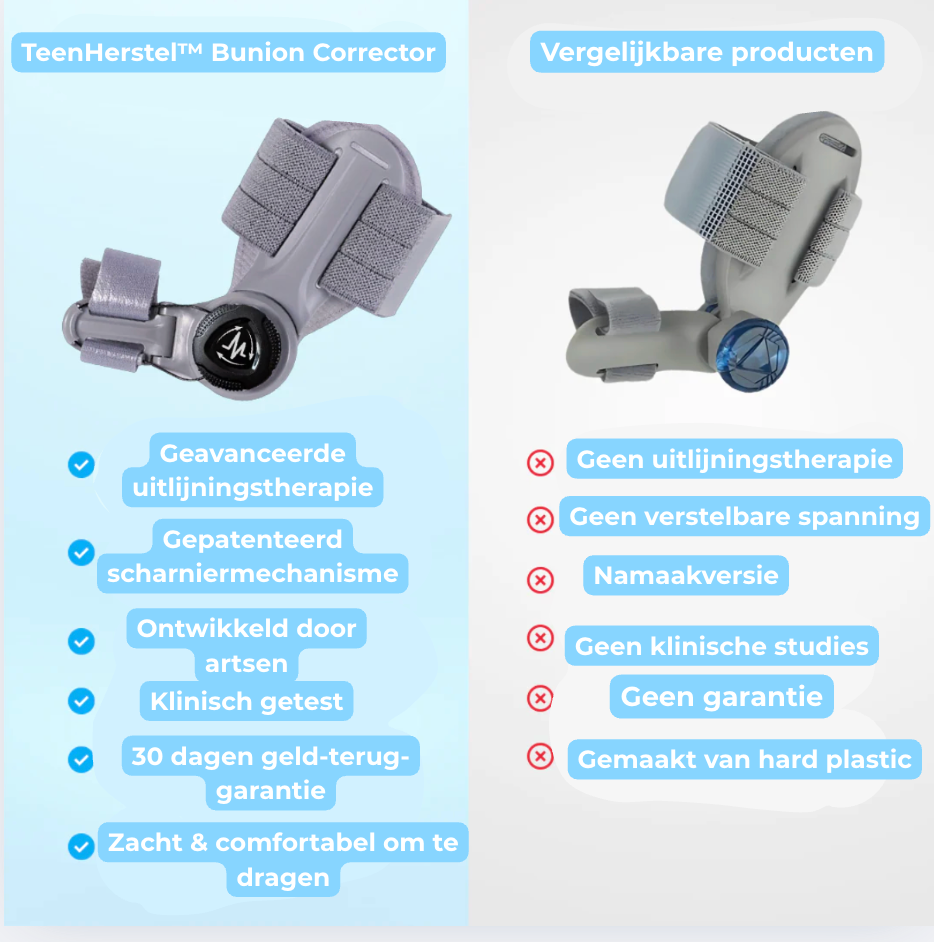 TeenHerstel corrigeert de stand van je grote teen op een natuurlijke manier.